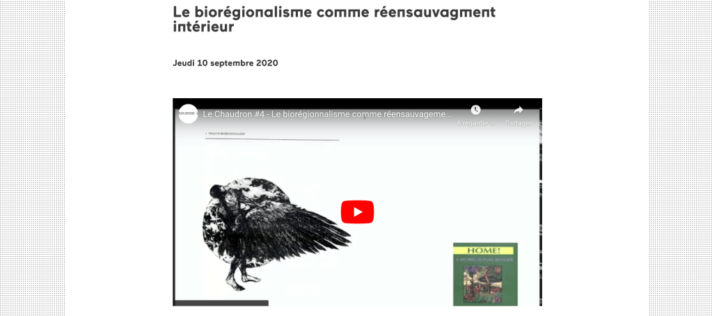 2020 · « Le biorégionalisme comme réensauvagement intérieur », Conférence, École Camondo-Toulon