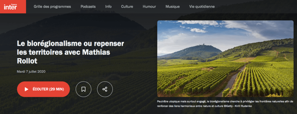2020 · Emission sur France Inter : « Le biorégionalisme ou repenser les territoires avec Mathias Rollot »