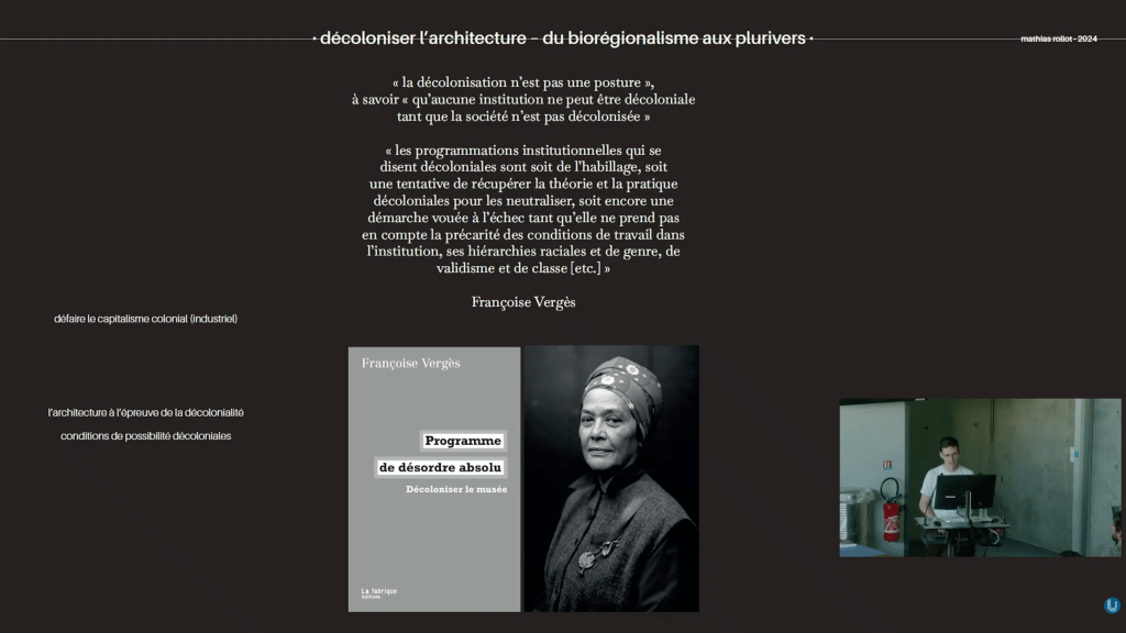 « La Fabrique Urbaine explore les coulisses de la ville et décrypte l’actualité urbaine, diffusé chaque premier jeudi du mois sur euradio. Décoloniser l’architecture avec Mathias Rollot – La Fabrique Urbaine #97 ; entretien et podcast réalisé par Aldo Bearzatto diffusé mercredi 17 décembre 2025.